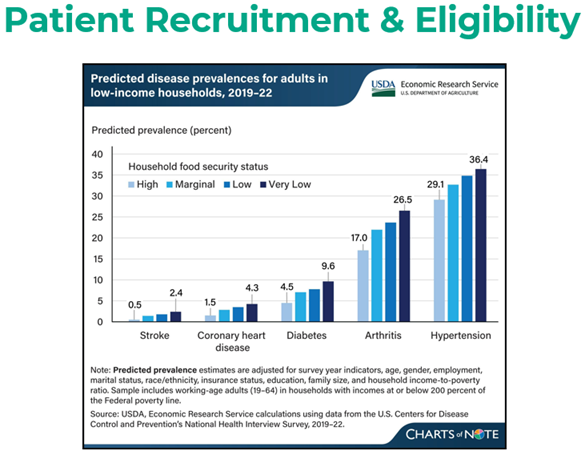 Hurley Medical Center’s Food FARMacy initiative was founded in 2017 to address Genesee County’s higher food insecurity rate of 13% (compared to the state average of 11%). It was funded by several grants and the Hurley Foundation to provide support services such as grocery access and nutrition education for Hurley patients. According to a 2024 MVC member survey, programs such as this are becoming more common in health systems across the state to address non-medical drivers of health such as food insecurity, economic and housing instability, and other factors. Food insecurity and being unable to access nutritious food has been linked to an increased risk of chronic diseases such as diabetes, cardiovascular disease, and certain types of cancer (Odoms-Young, 2024).